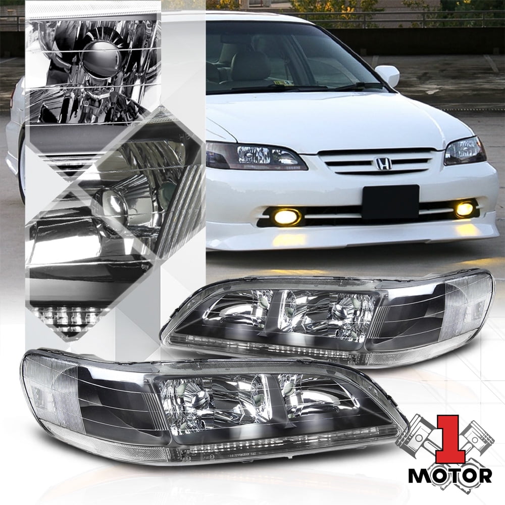 Headlight Assembly For 1998 1999 2000 2001 2002 Honda Accord Headlamp Replacement Chrome Housing Amber Reflector One Year Warranty Passenger And Driver Side Walmart Com Walmart Com